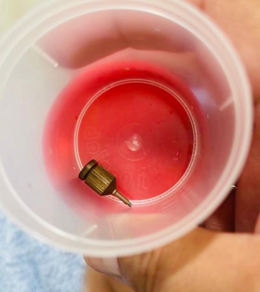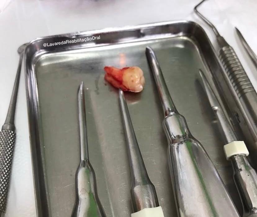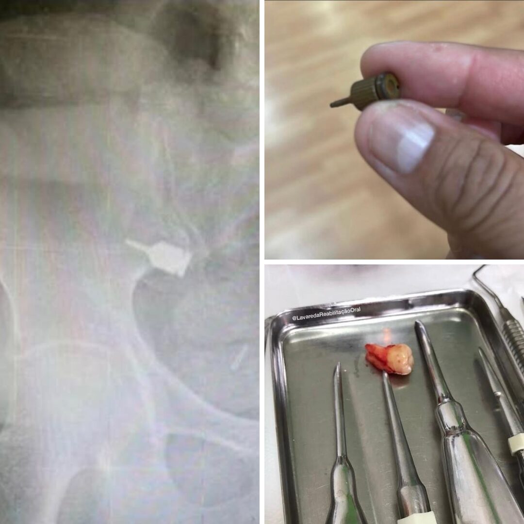 “Passei por algo que nunca imaginei viver. Essa peça que aparece na foto foi engolida durante um procedimento odontológico. Avisei, pedi ajuda, e mesmo assim fui ignorada. Só descobri depois que era uma ferramenta pontuda que percorreu meu corpo e precisou ser retirada com cirurgia.”