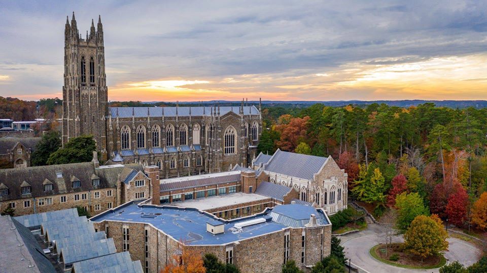A tradicional Universidade Duke, localizada na cidade de Durham, na Carolina do Norte, foi fundada em 1838 por metodistas na vizinha cidade de Trinity. Originalmente chamada Trinity College, foi transferida em 1892 para a cidade de Durham, onde a família Duke passou a atuar como sua principal benfeitora.