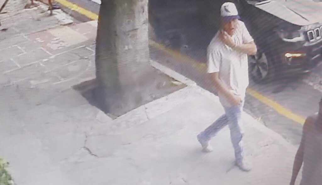 Uma das imagens um dos criminosos aparece caminhando e falando ao celular.