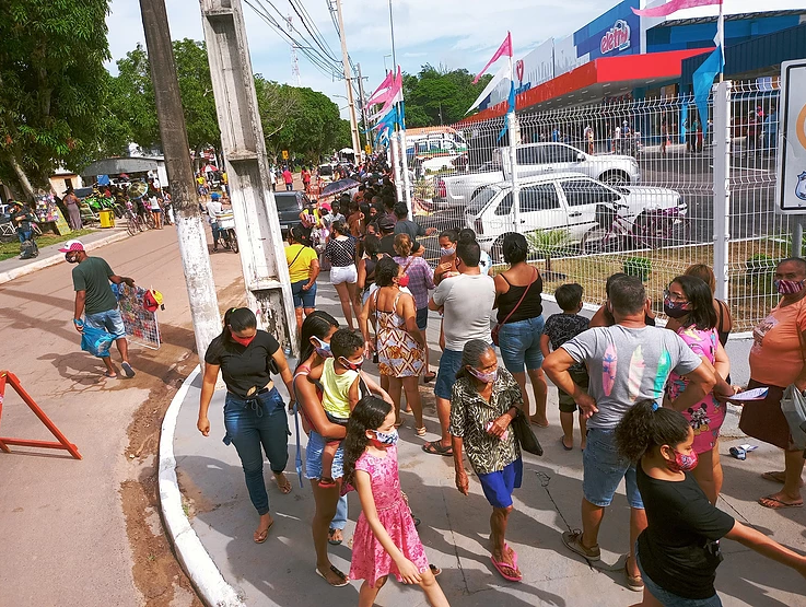 A grande concentração de pessoas ansiosas pelas compras e preços baixos divulgados pela rede de supermercados, fez com que uma fila grande se formasse, e dobrasse ao lado do prédio.