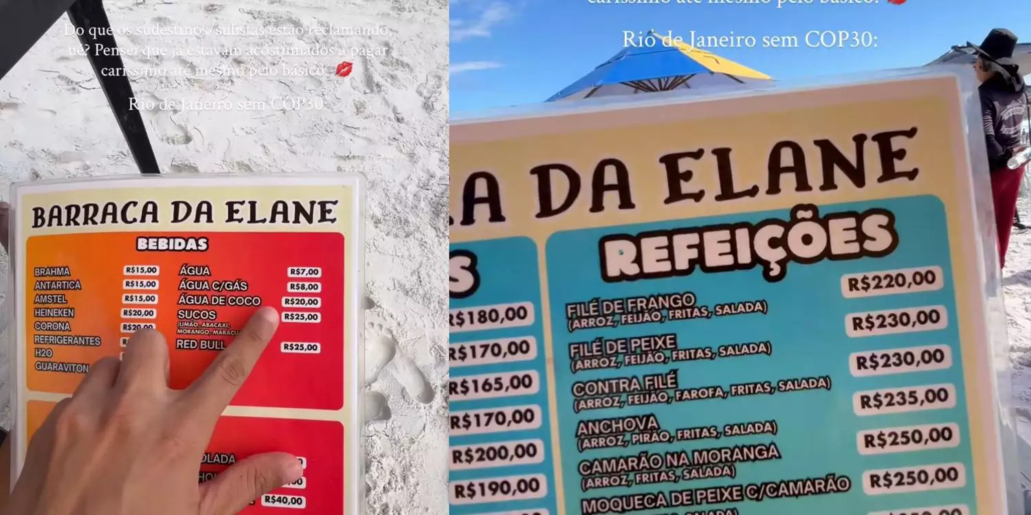 O influenciador paraense Thiago Guimarães viralizou nas redes sociais após publicar um vídeo comparando os preços de refeições no Rio de Janeiro com os valores cobrados em Belém durante a 30ª Conferência das Nações Unidas sobre Mudanças Climáticas (COP30). No registro, gravado em tom leve e bem-humorado, ele demonstra surpresa com o custo de uma refeição simples para duas pessoas no Rio, que chegou a R$ 220, além do preço de uma água de coco vendida por R$ 20.
