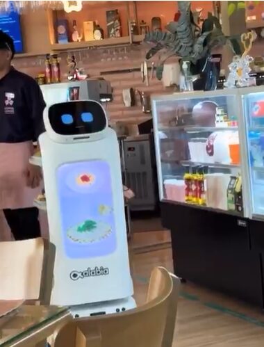 O robô, além de entregar os pedidos nas mesas, também interage com os clientes, pedindo educadamente para que desobstruam seu caminho caso algo esteja atrapalhando seu trajeto.