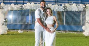 Jogador do Paysandu realiza chá revelação no Estádio da Curuzu e anuncia primeiro filho