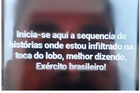 Segundo o delegado, ao todo foram feitas cinco publicações relacionadas ao evento. Na primeira delas, o jovem, que também é tatuador, escreveu: “Inicia-se aqui a sequência de histórias onde estou infiltrado na toca do lobo, melhor dizendo, Exército Brasileiro”, sic.