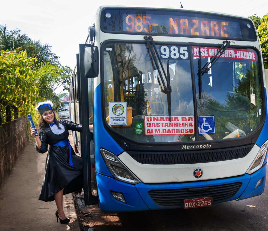 A jovem moradora do bairro do 40 Horas, Jéssica Ferreira, inovou ao fazer seu ensaio de formatura dentro do ônibus 40 horas-Ver-o-Peso que fez parte de sua luta diária para ir à faculdade, nesses últimos anos.