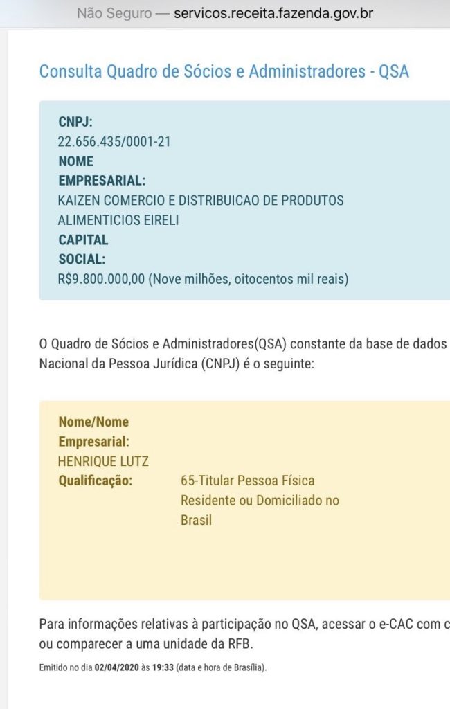 Novo dono – A história dessa empresa fica ainda mais estranha quando em abril deste ano, a Kaizen, simplesmente mudou de dono e teve o seu capital social aumentado para mais de R$ 9 milhões. O novo dono se chama Henrique Lutz, de quem nunca se ouviu falar.