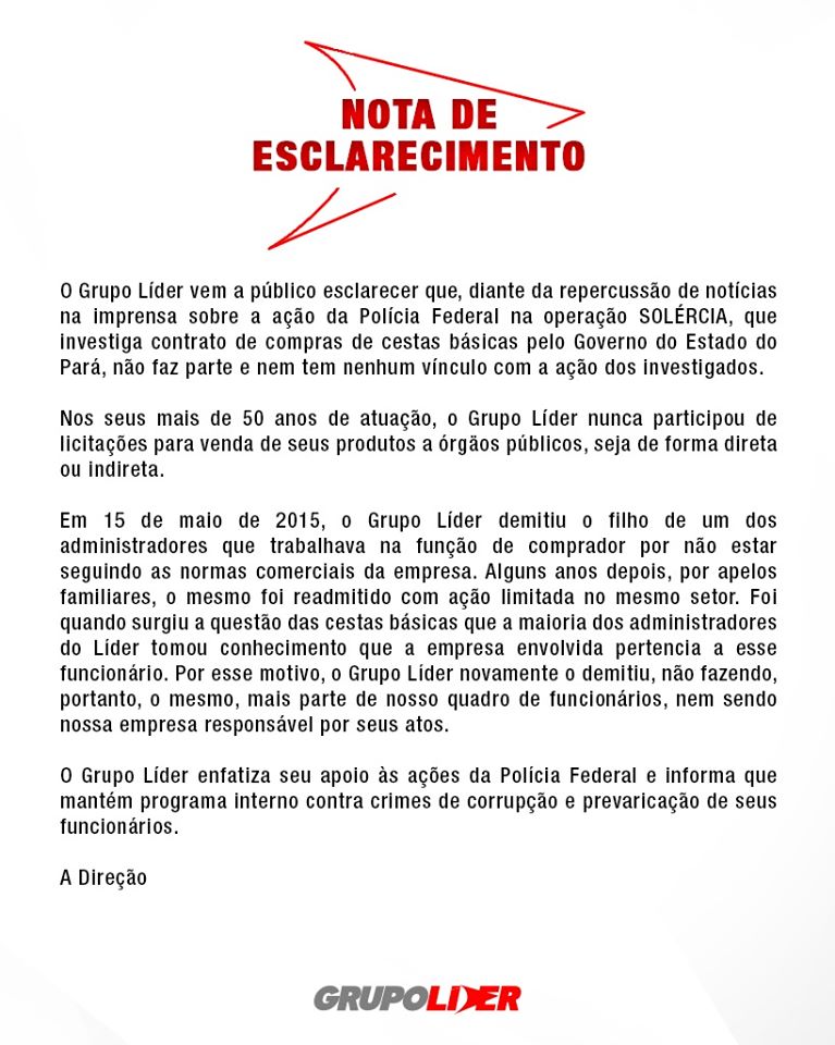 Segundo nota sobre a operação Solércia, divulgada pela Polícia Federal, “Durante as investigações, a Polícia Federal conseguiu indícios da existência de várias empresas – incluindo a empresa vencedora do contrato das cestas básicas [no caso, a Kaizen] – que estavam em nome de interpostas pessoas, mas pertenciam, de fato, a empresários que são proprietários de uma grande rede supermercado e magazine no estado do Pará”. Essa pessoa que seria a proprietária da Kaizen é Edson Araújo Rodrigues, sobrinho dos donos do grupo de supermercados Líder.