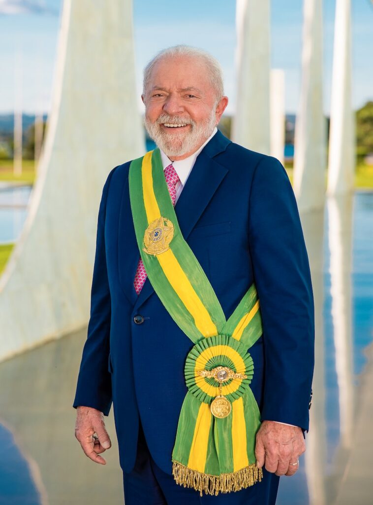 O presidente Luiz Inácio Lula da Silva divulgou nesta segunda-feira, 27, uma nova foto oficial como presidente da República em seu terceiro mandato. Na imagem, o chefe do Executivo aparece na área externa do Palácio da Alvorada, residência oficial da Presidência da República, em Brasília, com a faixa presidencial em um dia ensolarado. Lula veste um terno azul e uma gravata vermelha.