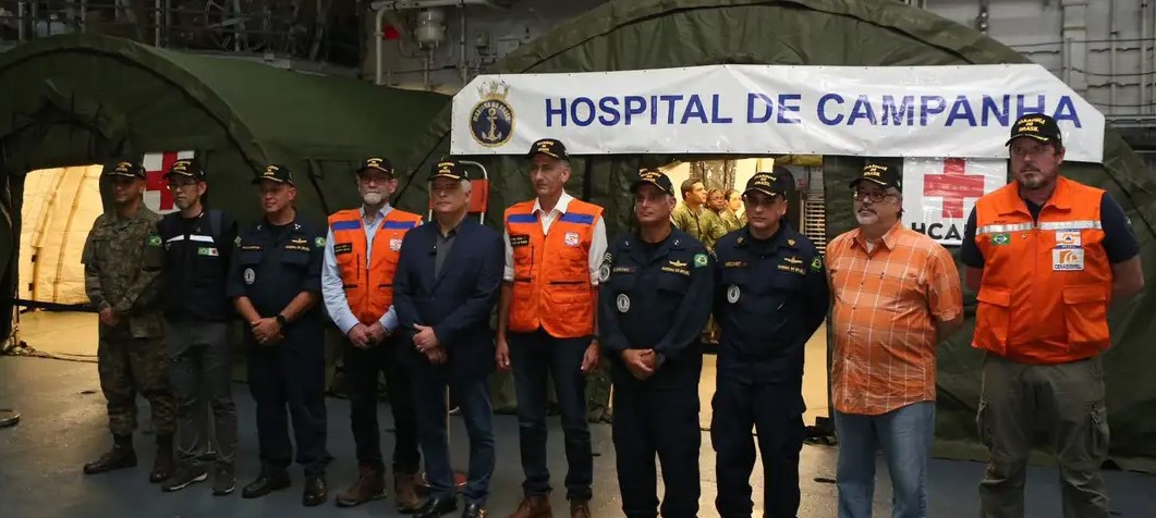 Além disso, navio também levará oito embarcações de médio e pequeno porte para auxiliar no resgate às vítimas ilhadas e no transporte de suprimentos pelas vias alagadas. A Marinha disse ainda que está mobilizando quatro navios, 20 embarcações, 12 aeronaves e centenas de militares, em uma operação é similar a uma ação de guerra. Amanhã, além do Atlântico, segue para o estado a Fragata Defensora, transportando doações e suprimentos.