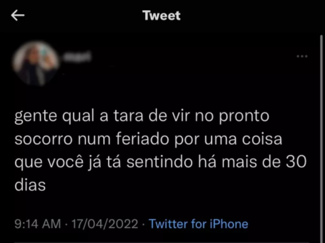 Desde sábado, 21, as redes sociais e os veículos de comunicação passaram a noticiar as ofensas que Mariana fez aos pacientes nas redes sociais. E um dos xingamentos, sem citar nomes, a médica criticou paciente que procurou o pronto-socorro de madrugada para tratar infecção urinária.