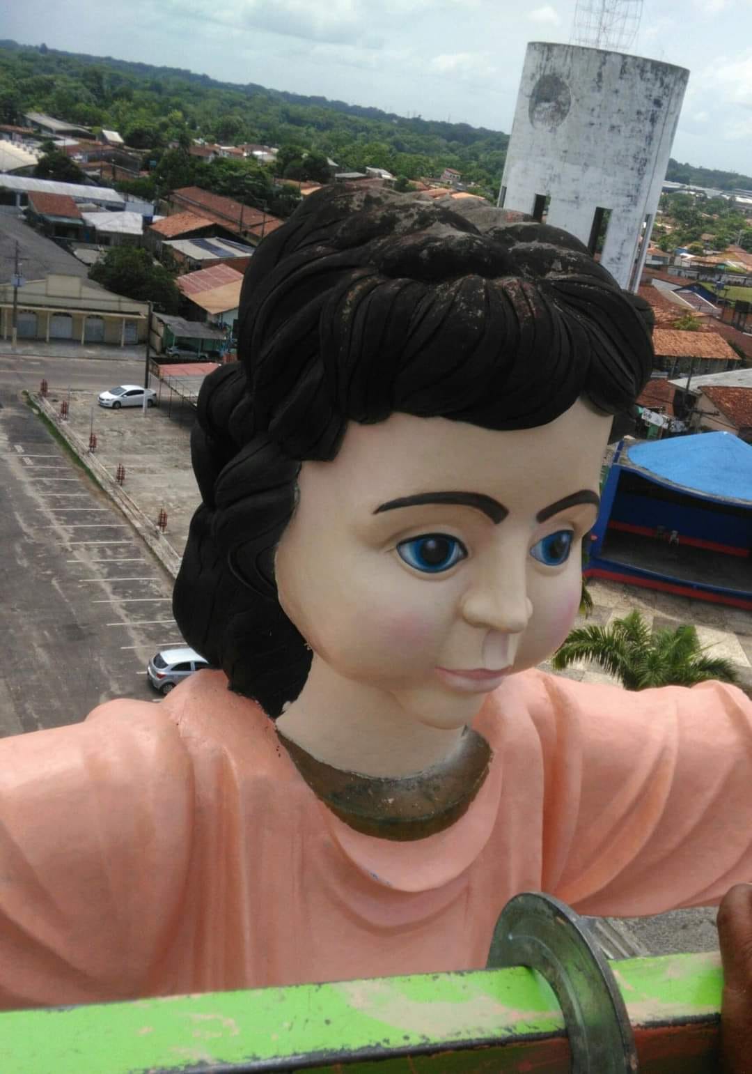 O icônico monumento do Menino Jesus, localizado na praça Matriz da cidade de Marituba, na grande Belém, ganhou um trato especial e tem chamando a atenção pela sobrancelha.
