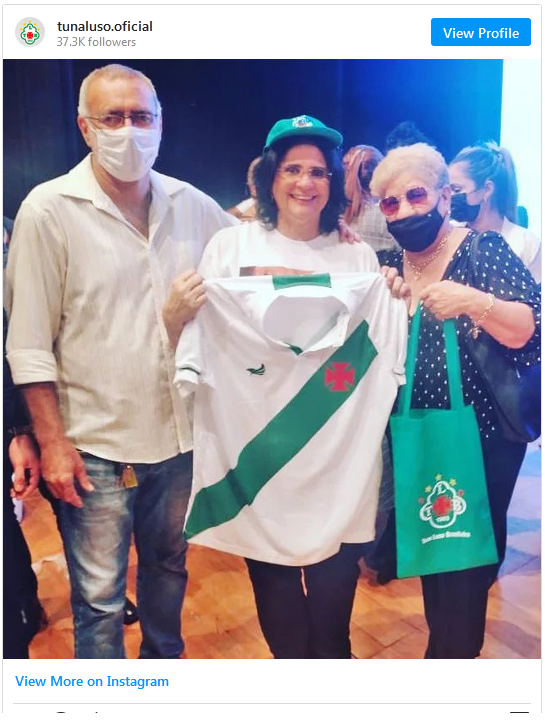 “No Brasil eu sou corintiana, o melhor time do mundo é o Timão e aqui sou Tuna. Sabia que eu não tenho camisa? A ministra paraense não tem camisa da Tuna, bora lá”, disse bem descontraída.