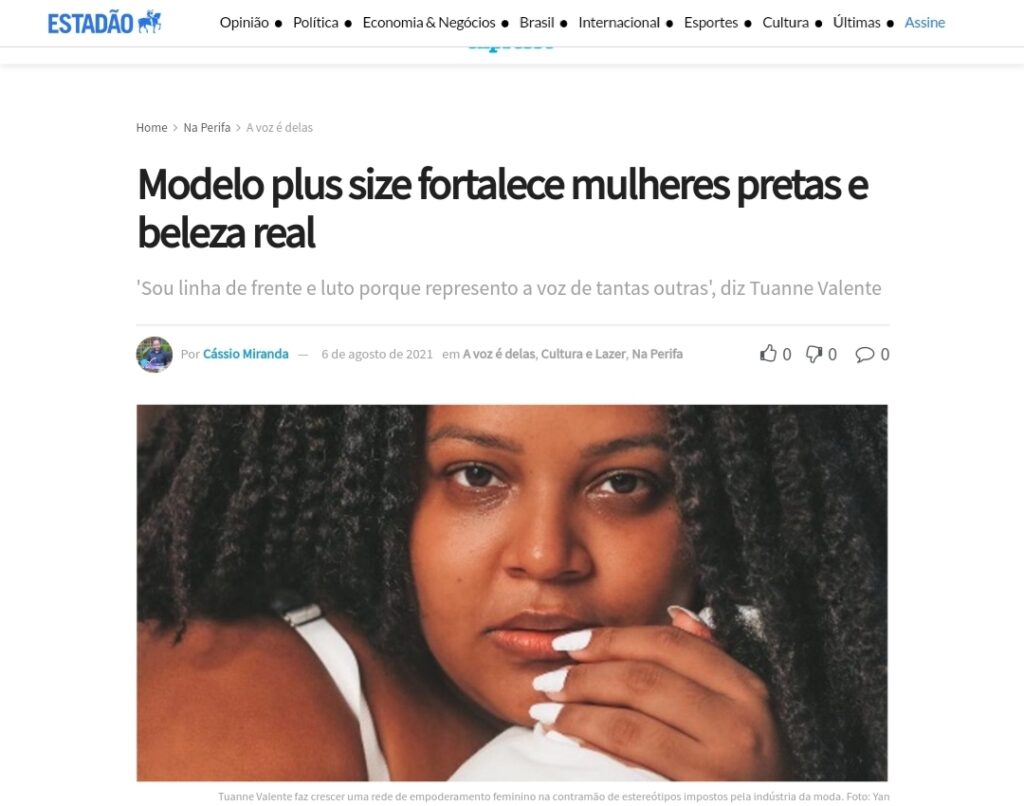 Tuanne Valente, moradora de um dos bairros mais populosos na região periférica de Belém se destaca em matéria nacional, veiculada no Estadão. A notícia retrata a vida da modelo plus size que fortalece mulheres pretas e a beleza real de cada uma delas.