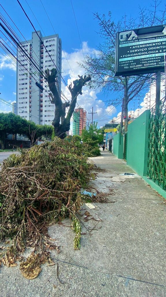Não é a primeira vez que podas de árvores chamam atenção em Belém. Especialistas denunciam que a forma como é feita, além de prejudicar o vegetal, também favorece que elas cresçam tortas, aumentando o risco de desabamento, principalmente neste período de inverno amazônico.