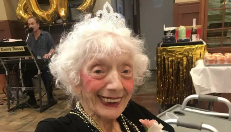 Angelina Friedman comemorando seu aniversário de 101 anos