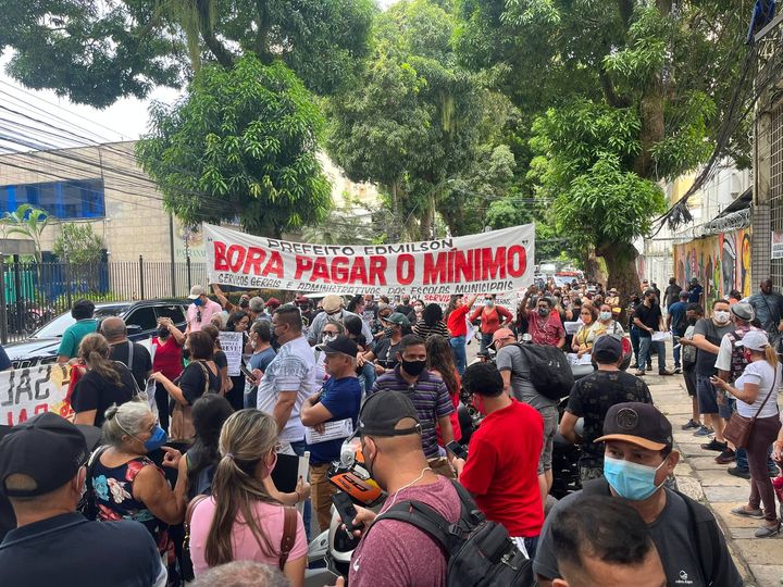 Durante a manhã desta sexta-feira, 1º, servidores da assistência social do município de Belém realizaram um protesto em frente ao gabinete da prefeitura, localizada na avenida Nazaré.