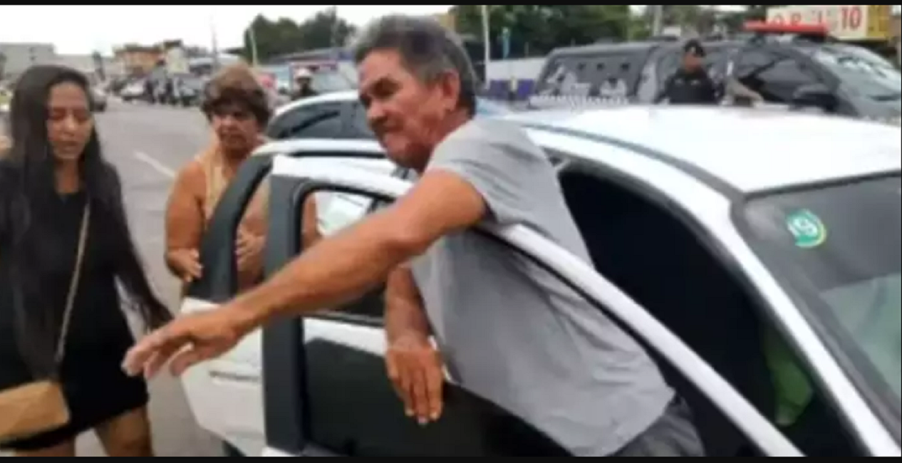 Uma situação curiosa e tensa foi flagrado após o desfecho do sequestro que parou Belém. O pai de Yan Carlos, homem que manteve uma mulher por 17 horas, jogou uma banana em direção a uma mulher jovem, que estava entre os populares que assistiam o desfecho da situação.