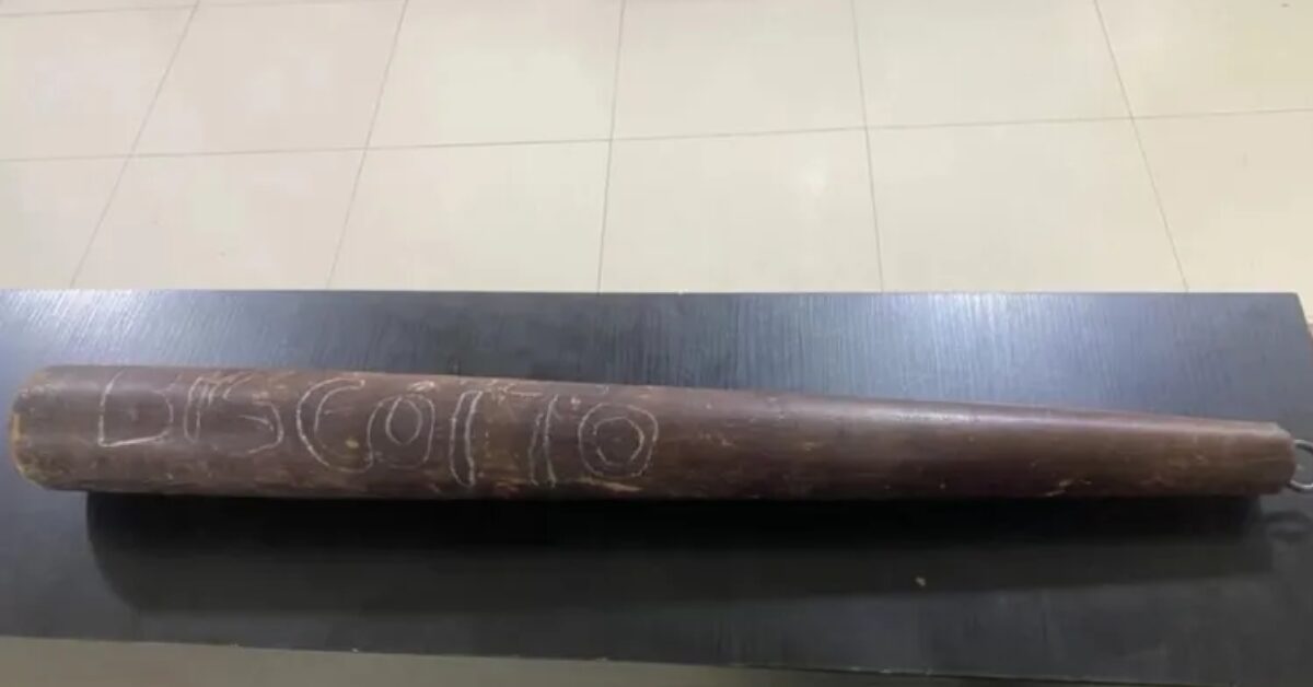 Após as informações, os militares foram até a residência do pai da criança e realizaram a prisão. No imóvel, foi apreendido um objeto semelhante a um taco, com a inscrição “Biscoito”, que pode ter sido utilizado na agressão.