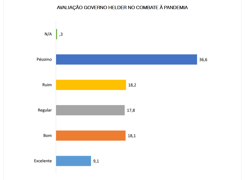 Em relação ao governo Helder Barbalho no trabalho de combate ao vírus, 54,8% avaliam negativamente; enquanto 27,2% avaliam positivamente. A avaliação regular soma 17,8%.