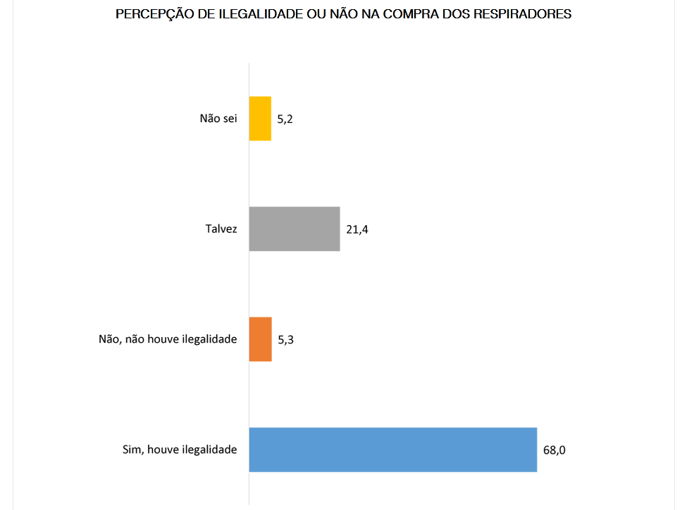 Além disso, 68% dos paraenses acreditam que houve ilegalidade na compra dos respiradores 21,4% dizem que “talvez” tenha havido ilegalidade. Apenas 5,3% disseram que não houve ilegalidade.
