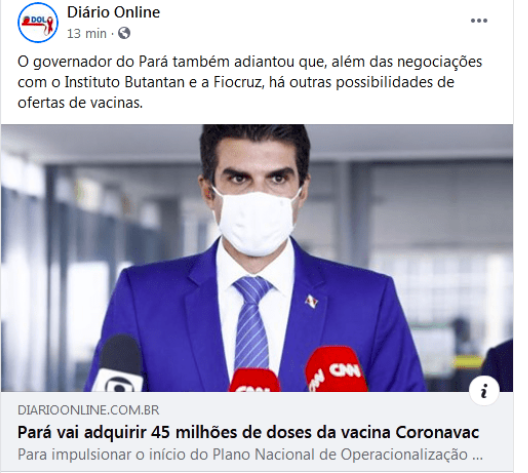 “Pará vai adquirir 45 milhões de doses da vacina CoronaVac”