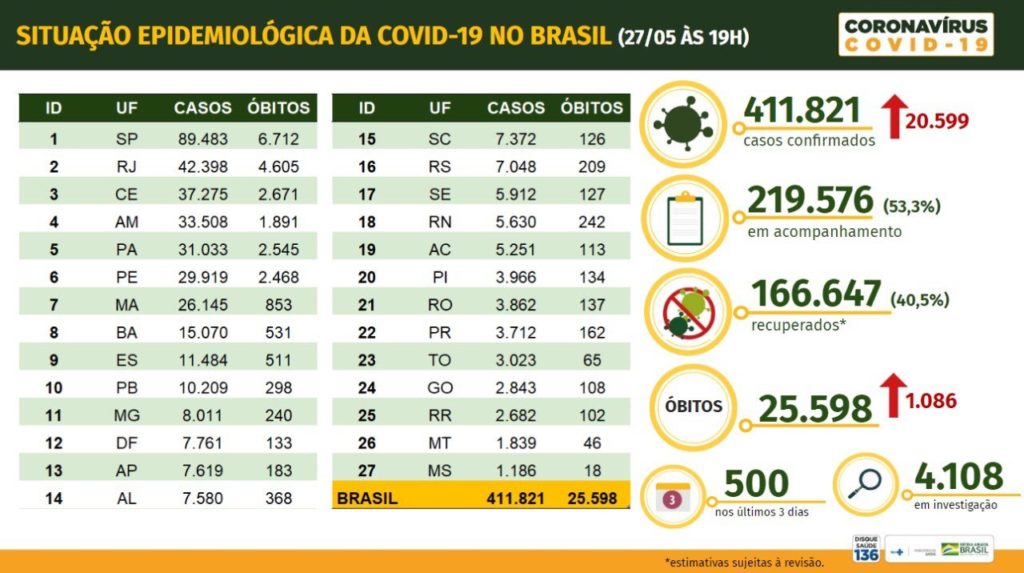 O estado do Pará ultrapassou o estado de Pernambuco e se tornou o quarto estado da federação em números de óbitos por Covid-19. O Pará só fica atrás de São Paulo, Rio de Janeiro e Ceará.