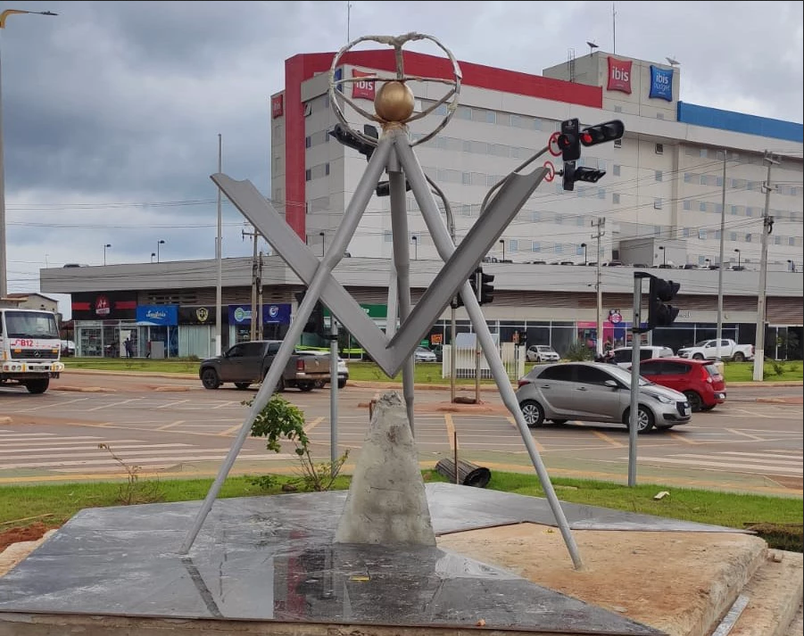 O monumento simbólico da Maçonaria no ponto estratégico da cidade foi instalado pela loja Lealdade e Justiça n°61, de Parauapebas.