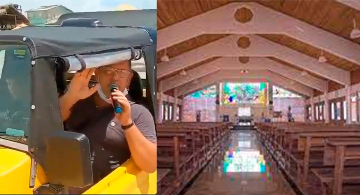 Neste final de semana, todavia, os banhistas deram de cara com o pároco da cidade, com um microfone e um bugre, convidando os fiéis a participarem da missa da Igreja local.