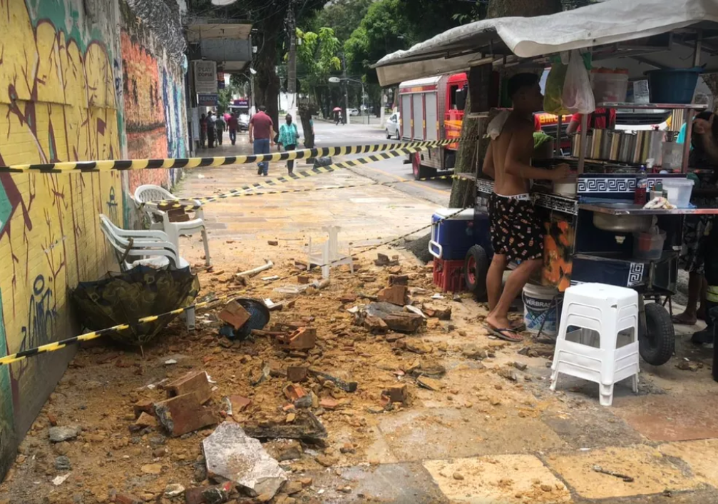 Em nota, o Corpo de Bombeiros e a Coordenadoria Estadual da Defesa Civil informaram que parte da parede interna de uma edificação particular desmoronou e alguns fragmentos caíram para o lado de fora do imóvel, duas mulheres que passavam no local foram atingidas e socorridas. A guarnição fez o isolamento na área, deixando a cargo do proprietário a solicitação de perícia no local.