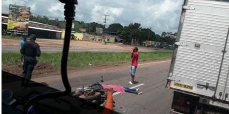 Passageira morre ao cair de moto e ser esmagada por caminhão na BR-316, em Benevides