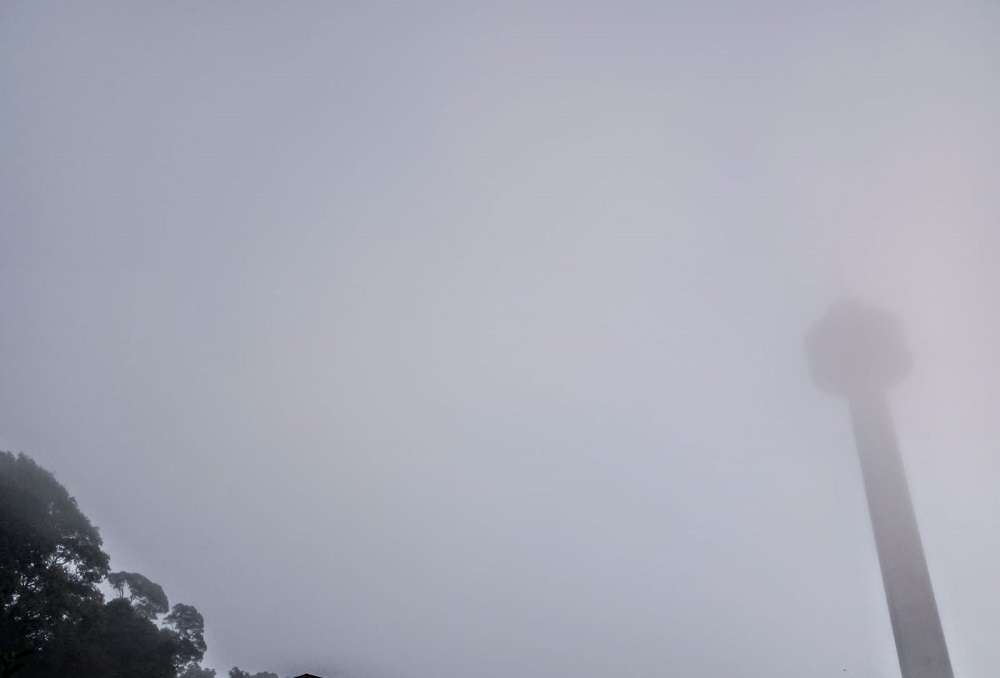 O bairro do Marco sob forte neblina, com a torre da RBA TV quase desaparecendo (foto de Elias Gonçalves)