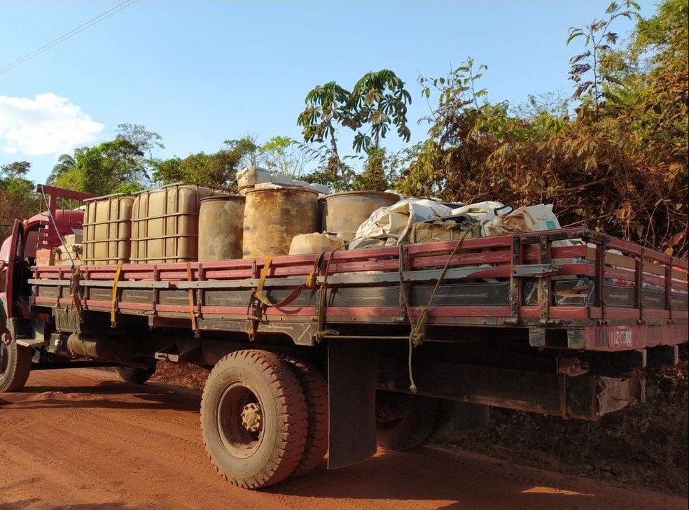 Na abordagem, foram identificados três caminhões, um com 45 mil litros, outro com 6 mil litros e o terceiro, com 8 mil litros de diesel. Também foram encontrados um motor, 50 munições ponto 40 e mantimentos, que seriam transportados para abastecimento das atividades do garimpo ilegal.