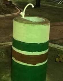 Parece que utilizaram aqueles tubos de concreto usados para drenagem de ruas e adaptaram para um lavatório. Quantos quilos deve pesar?
