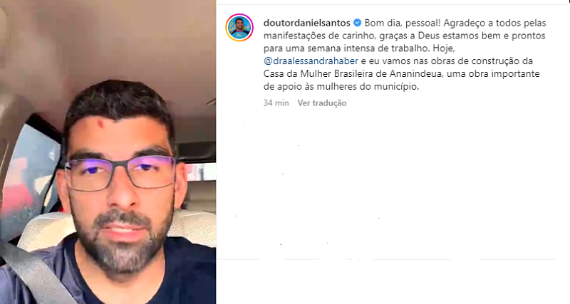 No perfil do prefeito, nesta segunda-feira, 17, Daniel Santos, postou que está bem e já trabalhando. Ele sofreu apenas ferimentos leves.