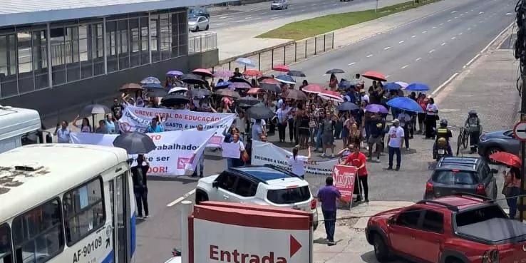 O ato ocorreu após uma manifestação em frente à Secretaria Municipal de Educação (Semed) e faz parte da greve iniciada na última quarta-feira (4). A paralisação foi mantida após assembleia realizada na sexta-feira (6), quando a categoria decidiu rejeitar a proposta de reajuste salarial de 6% apresentada pela prefeitura.