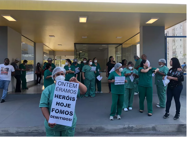 Entre os trabalhadores desligados estão enfermeiros, médicos, equipe de higienização, copa, maqueiros, diretoria, gerência assistencial. O grupo afirma que muitos não têm condições de ser transferidos para outro município.