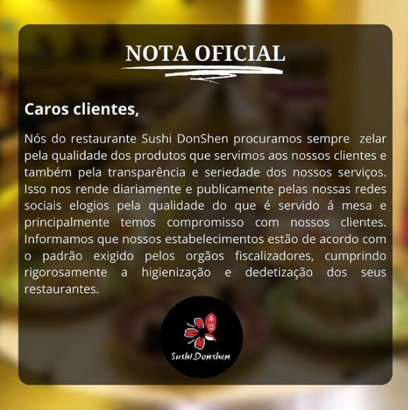 “Informamos que nossos estabelecimentos estão de acordo com o padrão exigido pelos órgãos fiscalizadores, cumprindo rigorosamente a higienização e dedetização dos seus restaurantes”, diz parte do comunicado.