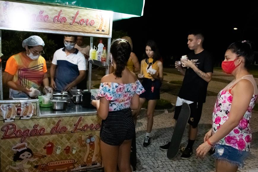 “É difícil ficar parado muitos meses. A gente depende literalmente do Portal. Já estava me preparando para o retorno. Em final de semana é sempre assim, bastante movimentado. Estou feliz de poder retornar com o meu trabalho”, disse Lorena Santos, de 30 anos, da Associação de Trabalhadores Informais do Portal da Amazônia (Atiplan).