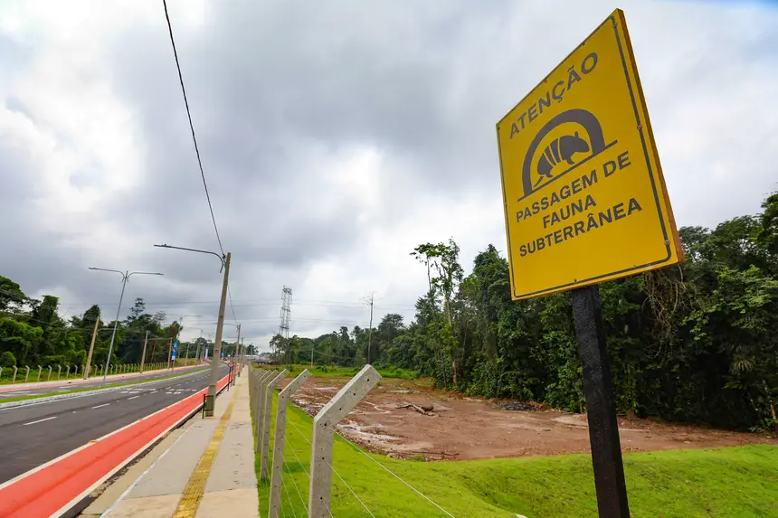 A passagem de fauna funciona como um corredor ecológico, garantindo que espécies possam atravessar a via sem entrar em contato direto com o fluxo intenso de veículos — estimado em mais de 20 mil por dia. Esse tipo de solução já é adotado em rodovias, mas ainda é raro em áreas urbanas, especialmente na região Norte.