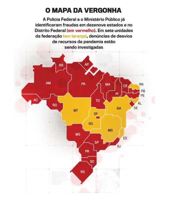 O caso dos kits chama atenção pela ousadia, por ter acontecido no nariz das maiores autoridades do país e por revelar a disseminação de outro vírus letal. Enquanto o país contabilizava as primeiras vítimas da doença, políticos desonestos, funcionários públicos corruptos, empresários inescrupulosos e aproveitadores em geral já estavam a postos em todos os cantos tramando uma forma de ganhar algum à custa do sofrimento alheio, mirando, como sempre, os cofres públicos. De norte a sul, já foram descobertos esquemas para superfaturar contratos, fraudar compras de equipamentos médicos e desviar recursos destinados ao combate à doença. Há investigações em andamento em todos os 26 estados, além do Distrito Federal. Os prejuízos estimados beiram os 4 bilhões de reais.