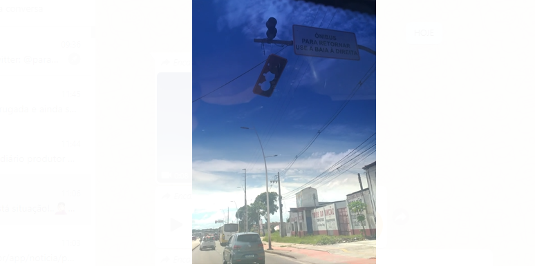 O internauta chama a atenção porque o semáforo pode se desprender e cair sobre alguém que estiver passando, causando ferimentos. Ele afirma também que ninguém da SeMOB foi visto por lá.