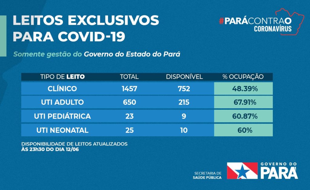 Com essas atualizações, agora, são 67.476 casos de coronavírus e 4.181 óbitos em todo estado do Pará. O detalhamento de casos e óbitos, com gênero, idade e cidade, está disponível aqui: http://covid-19.pa.gov.br
