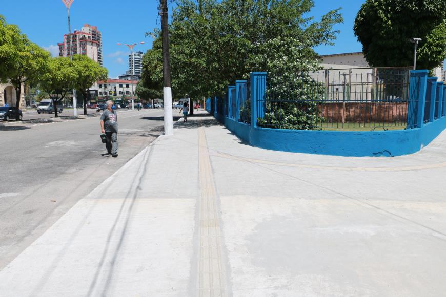 Praças – Nas praças e demais logradouros revitalizados pela Seurb, calçadas  de pedras ou concreto também passaram por reforma e foram adequadas ao padrão de acessibilidade, com piso de sinalização tátil e rampas de acesso. Na Praça da República, foram cerca de 12 mil metros quadrados de calçada de pedra portuguesa renovada. Na Praça Batista Campos, 1500 metros quadrados passaram por manutenção,assim como no Museu Emílio Goeldi e o Bosque Rodrigues Alves. Na Praça Dalcídio Jurandir, toda a extensão no entorno da praça ganhou novo calçamento com piso tátil e rampas, além da recuperação de calçadas internas.
