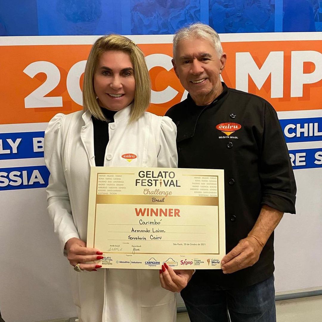 É com o coração EXPLODINDO DE FELICIDADE, que venho aqui, contar para vocês que estamos concorrendo ao MELHOR SORVETE DO MUNDO, com o nosso sabor carimbó!! Após 9 anos consecutivos, eleitos o melhor sorvete do Brasil, acabamos de participar da última etapa do Gelato Festival World Masters e iremos representar o Brasil na Itália em dezembro deste ano. OBRIGADA, a todos que fazem o nosso sonho acontecer. Quanta gratidão!!! Na foto, Armando e Socorro Laiun, representando a família Cairu, na preparação do sorvete e na entrega do título. Um dia para ficar pra sempre na memória e no coração. ❤️? @sorveteriacairu O MUNDO É SEU!!!!!!