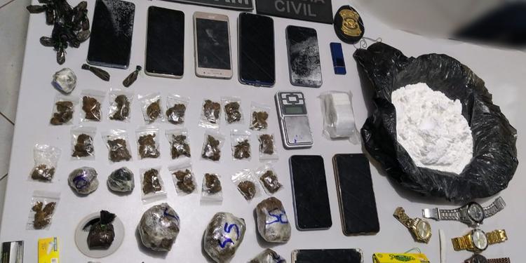 Durante as buscas no interior da residência, foram encontradas mais 12 porções de maconha, totalizando cerca de 305 gramas, além de 560 gramas de cocaína, aparelhos celulares e materiais que seriam utilizados na fabricação das drogas.