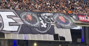 A principal torcida organizada do Clube do Remo exibiu, neste domingo (8), três bandeirões no Estádio Mangueirão, em Belém, com homenagens ao governador do Pará, Helder Barbalho, à vice-governadora Hana Ghassan e a Helder Filho. As faixas foram colocadas no setor ocupado pela organizada durante a partida. Os três homenageados são torcedores do Remo. Helder … Continue lendo Torcida organizada do Remo exibe bandeirões com homenagens a Helder Barbalho e Hana Mangueirão