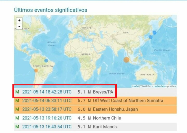 Moradores de Breves, no arquipélago do Marajó, sentiram a terra tremer na tarde desta sexta-feira, 14. O tremor foi sentido por volta das 16 horas, naquela cidade, considerada uma espécie de capital do Marajó, na região das ilhas. De acordo com o Centro de Sismologia da Universidade de São Paulo (USP), a magnitude foi de 5.1.