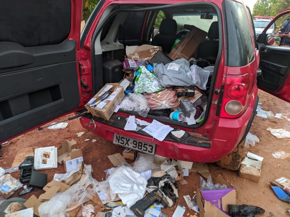 O motorista da carreta foi interceptado por um veículo Ford Escort, conduzido pelo trio, sendo obrigado a desviar a rota para uma estrada vicinal, onde parte das mercadoria foi retirada do baú e colocada no porta-malas do veículos dos assaltantes.