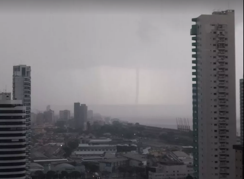 Já na Estação das Docas, pedestres registraram uma tromba d’água no Rio Guamá. A tromba d’água é uma espécie de nuvem em formato de funil de se forma sobre rios, mares ou lagos. Ela é parecida com um pequeno tornado e, geralmente, mantém um fluxo de ar que se move de baixo para cima, ou seja, começa na água e “sobe” em direção ao céu.