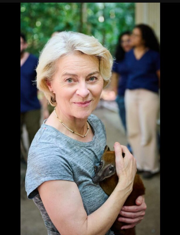 Apesar da agenda diplomática intensa, Ursula dedicou um tempo para uma visita ao local e se surpreendeu com a fauna amazônica. Nas redes sociais, ela publicou um vídeo em que aparece observando tartarugas, interagindo com papagaios e, especialmente, acariciando um quati. O momento descontraído chamou atenção dos internautas brasileiros e estrangeiros.